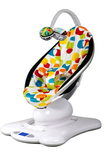 Esta hamaca o sillita también mece automáticamente. Es de la marca 4moms y se llama MamaRoo. Tiene diferentes programas o tipos de movimiento y a la que también se puede conectar cualquier MP3 para que el bebé además de tranquilizarse con el balanceo también se relaje con el sonido ambiente. www.4moms.com