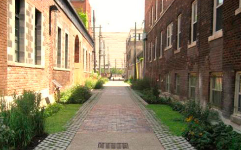 Chicago es una de las ciudades con mayor número de callejones (13.000). En el 2006 empezaron a cubrirse con superficies permeables para desviar el agua lluvia a la tierra, en lugar de por un alcantarillado caduco y reducir inundaciones. (CityLab).