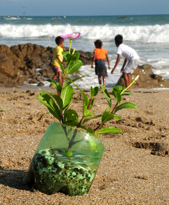 Posteriormente, los motivaron a realizar una minga de limpieza para recoger el plástico salpicado en la arena, como una manera de poner en práctica ese romance con el mar, para finalmente enseñarles a emplear ese material para elaborar “inventos”, como maceteros, mosquiteros, sillas, focos, muros, muebles e incluso camas.