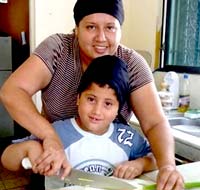 Mónica Cabrera y su sobrino José Gabriel aprendiendo a cocinar.