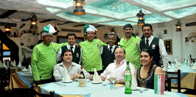 El restaurante conserva empleados con más de quince años en el local: De pie: Diómedes Valeriano (i), chef ejecutivo (20 años); Carlos Suárez, mesero (15 años); Francisco Valeriano, subchef (20 años); Jorge Giorgetto Jaime, mesero (25 años); Víctor Castillo, chef panadero (25 años), y Eleuterio Franco, mesero (18 años). Sentados, los nuevos directivos: Diego Silva, gerente; Renato Carló, propietario, y Renata Carló, jefa de relaciones públicas. .