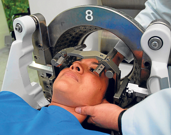Pero antes de la aplicación, el paciente debe estar en ayuno para la colocación de un marco de estereotipia, el cual dará la ubicación milimétrica del tumor. “Es completamente libre de dolor, dura aproximadamente 60 minutos y al finalizar, el paciente es egresado al reintegro de sus actividades en las siguientes 24 horas”.