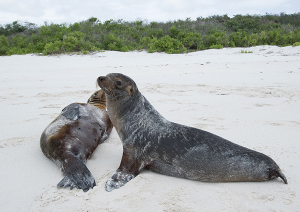 Es un lobo marino a quien vio por primera vez a fines de 2013, recostado junto a su madre en la arena brillante de esta playa, a mi parecer, de las más bellas de Galápagos.