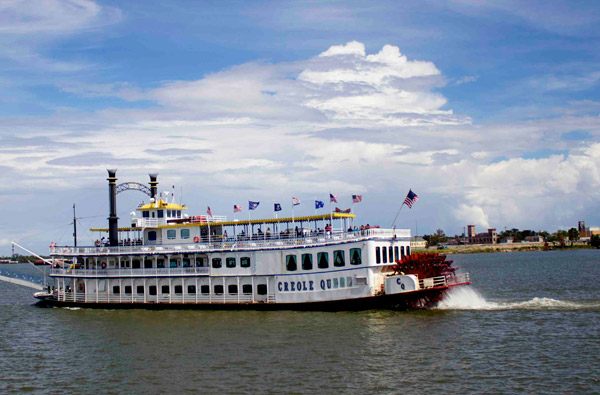Viajar a Nueva Orleans significa necesariamente tomar un crucero en el río Misisipi con barcos a vapor del siglo XIX, que hoy parten desde el muelle junto a la plaza de España. En esos tiempos, los vapores eran los amos del Misisipi, alcanzando Louisville y Kentucky en tres y cinco días, algo que se suponía muy rápido para la época. Más de 30 barcos se alineaban en los muelles de Nueva Orleans entre 1830 y 1860, mientras que desde las orillas era posible observar sus figuras impulsadas por enormes ruedas de paletas, de 25 toneladas de peso, para navegar río arriba. Estas embarcaciones suelen tener salones para escuchar jazz en vivo.